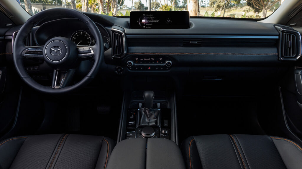 Na estrada, o comportamento dinâmico mantém a tradição da Mazda. A direção é precisa, bem calibrada, e transmite confiança em curvas. A tração integral trabalha de forma inteligente, distribuindo torque conforme necessário, especialmente útil em pisos irregulares ou condições adversas. A potência combinada do sistema híbrido entrega acelerações consistentes, sem esforço aparente, e o conjunto se mostra mais do que suficiente tanto para ultrapassagens quanto para viagens longas.
