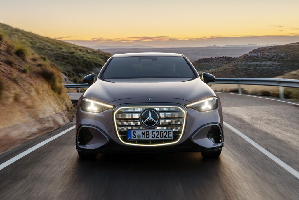 Por dentro, o salto é ainda mais evidente. O interior aproxima o modelo do universo do Classe S, com destaque para o impressionante MBUX Hyperscreen de 39 polegadas que domina o painel e integra funções de entretenimento, navegação e assistência com inteligência artificial avançada. Materiais refinados, iluminação ambiente sofisticada e recursos como o teto panorâmico com iluminação estrelada elevam a experiência a um novo patamar de luxo e imersão digital.